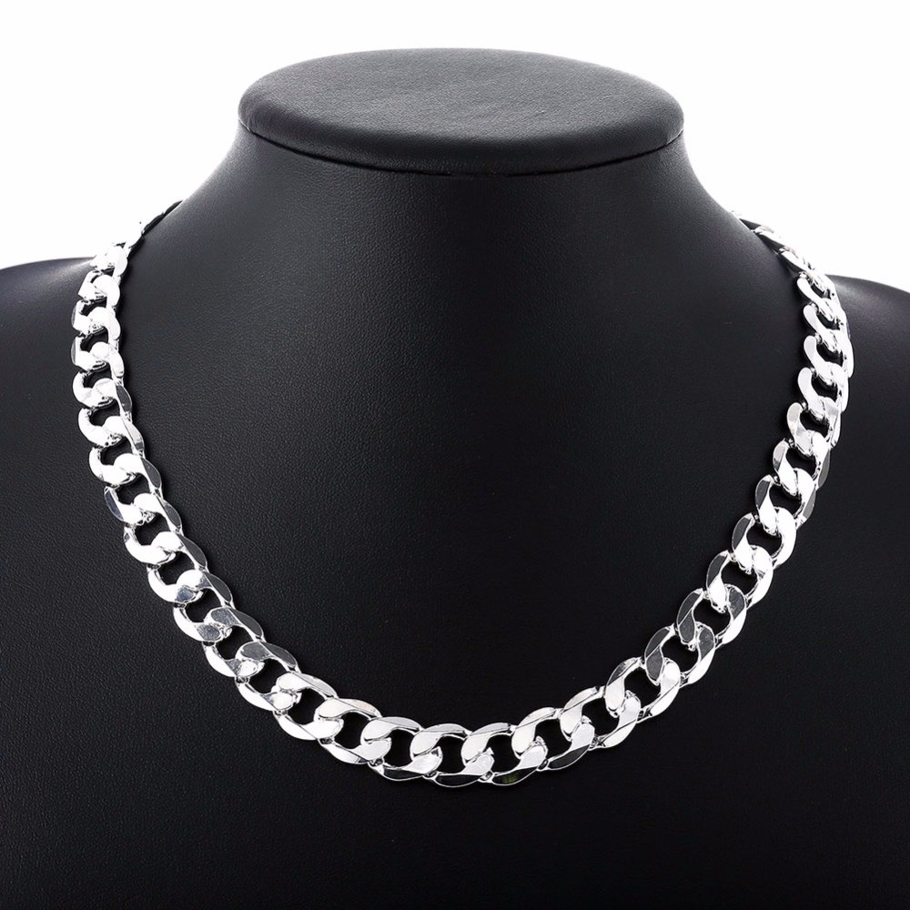 20 22inch 12 Mm Curb Chain Necklace For Men Silver 925 Necklaces Chain Choker Man Fashion Male Jewelry Wide Collar Torqu Shopee Malaysia